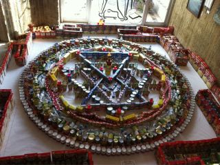 Look at all the food everyone at school brought in for people who can’t buy food at the grocery store. Why can’t some people buy food? What were the big girls thinking about when they made this food mandala?