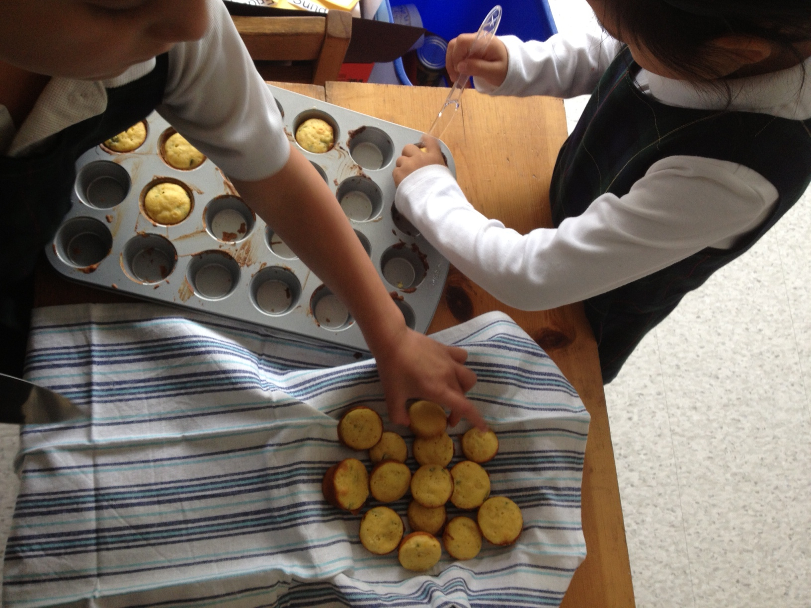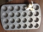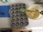 “We scooped the muffins into the pan.”