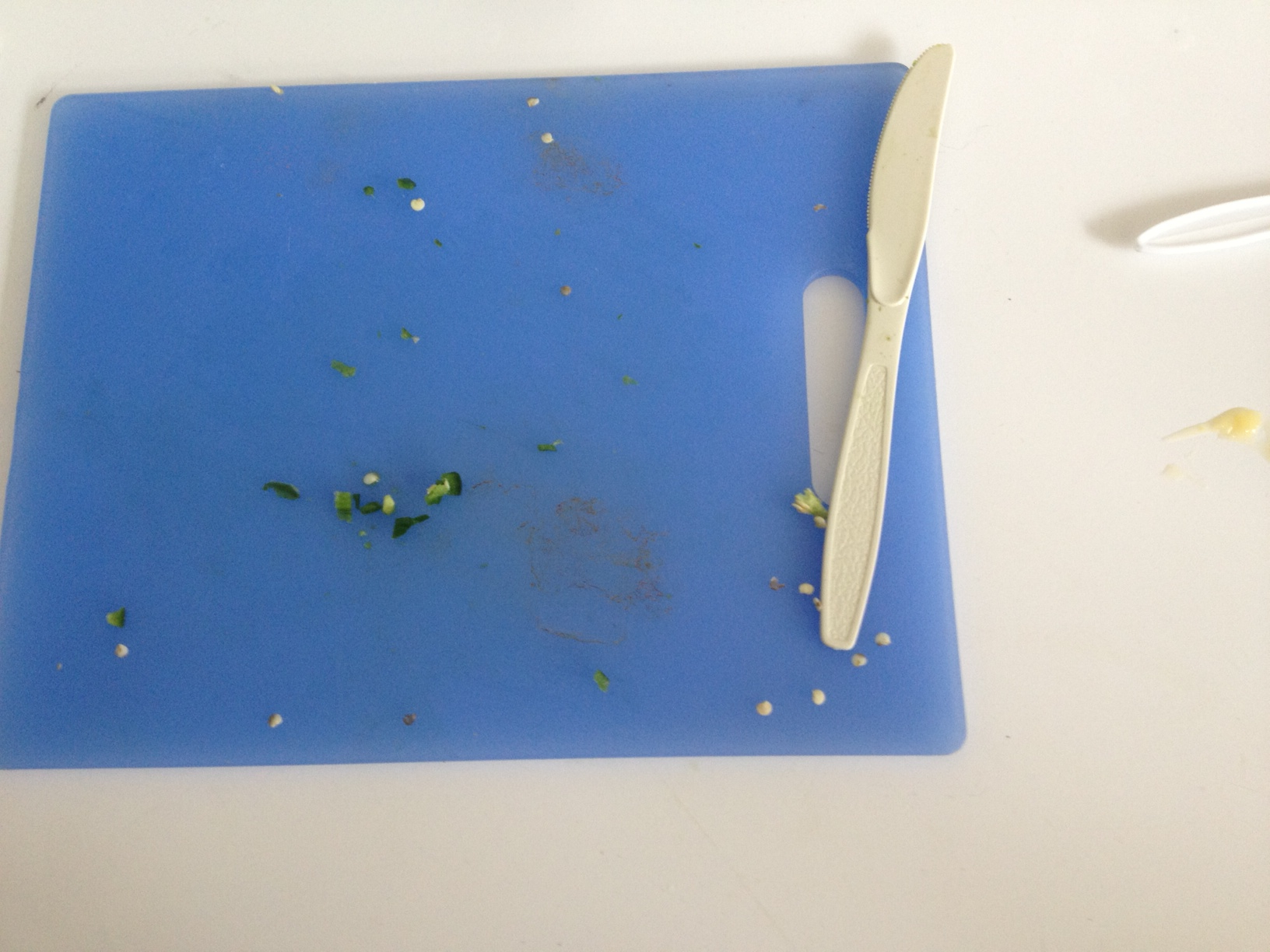 “We chopped the jalapenos. We put them in a bowl. You can’t touch your eyes after you touch jalapenos because the seeds might sting and burn your eyes.”