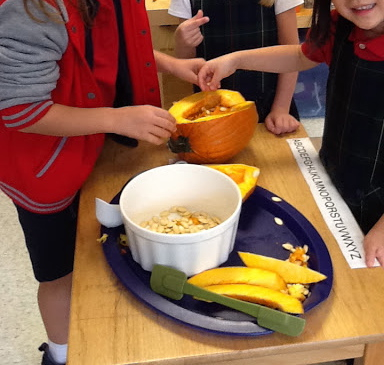 We took the seeds out and roasted them. Then we put all the ingredients together and cooked them up into a delicious soup!
